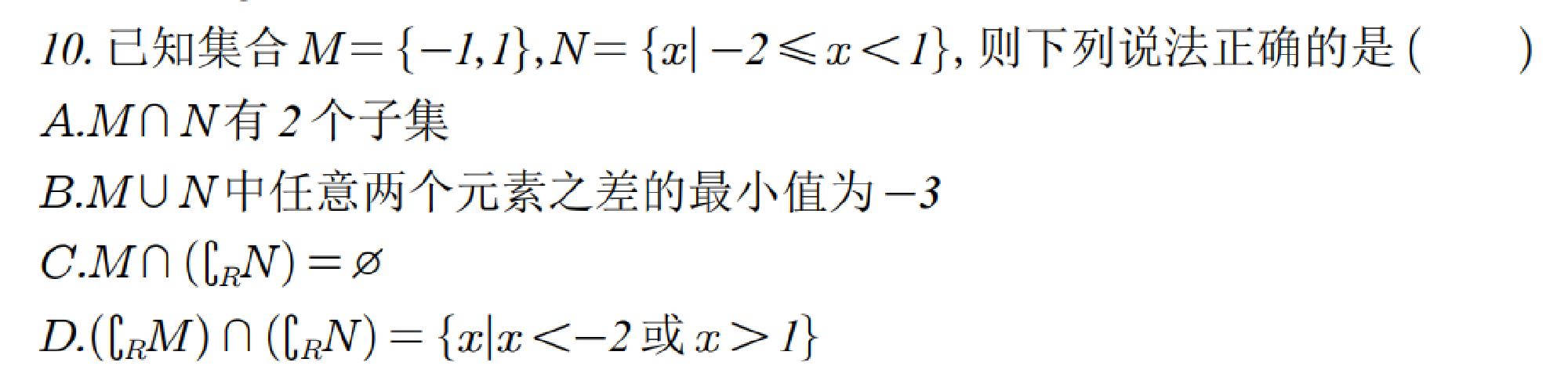 10 | 选择题 | 集合与简易逻辑 |