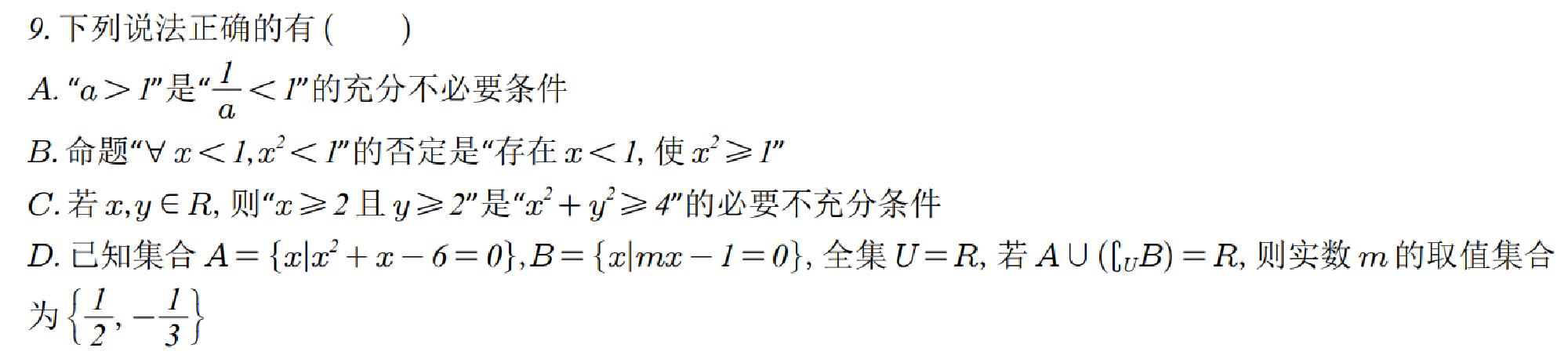 9 | 选择题 | 集合与简易逻辑 |